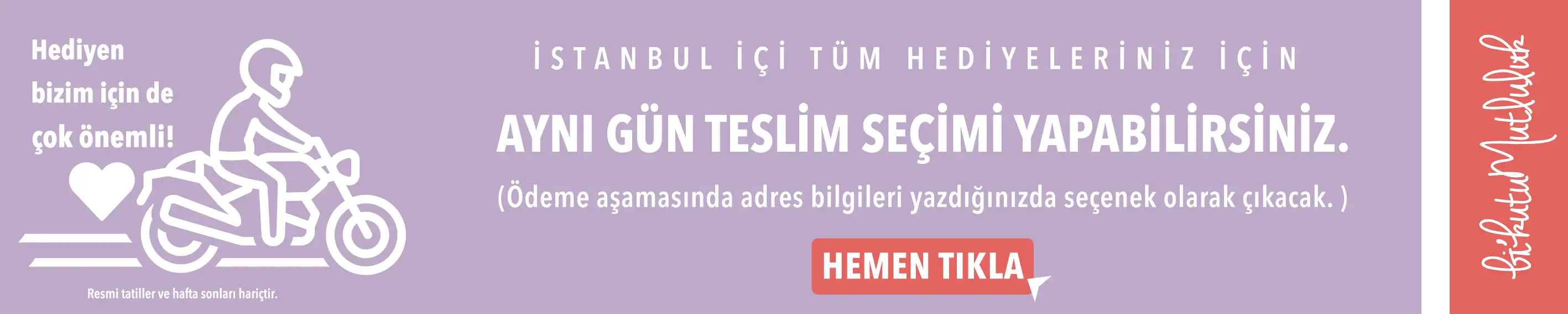 İstanbul içi aynı gün teslimat! 🚀 18:00’a kadar ev, okul ya da iş yerine hediyen ulaşıyor. Çünkü senin için değerli olan bizim için de çok önemli. Zamanında teslim, iki kat mutluluk! ❤️ Tüm ürünlerde ve hediye kutularında hafta içi 11:30 'a kadar verdiğin İstanbul içi siparişler 18:00'den önce ulaştırma garantisi ile aynı gün kapında! Hemen Bikutumutluluk gönder, en özel hediyelerle mutlu et!
