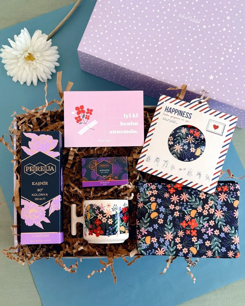 Küçük Mutluluklar Lila Collection Bikutumutluluk Büyük Hediye Kutusu ( Boş Hediye Kutusu )Pereja Mimoza Kolonyası 250 ml Cam ŞişeMutlu Kadına Lacivert Çiçekli Hediye Kupa FincanZarif Çiçekler Lacivert Makyaj Çantası Clutch KalemlikZarif Çiçekli Lacivert Saten FularPereja Pudra Katı Sabun 100 grAnneye Sözler Kısa Notlar Hediye Kartı - İyi ki Benim Annemsin